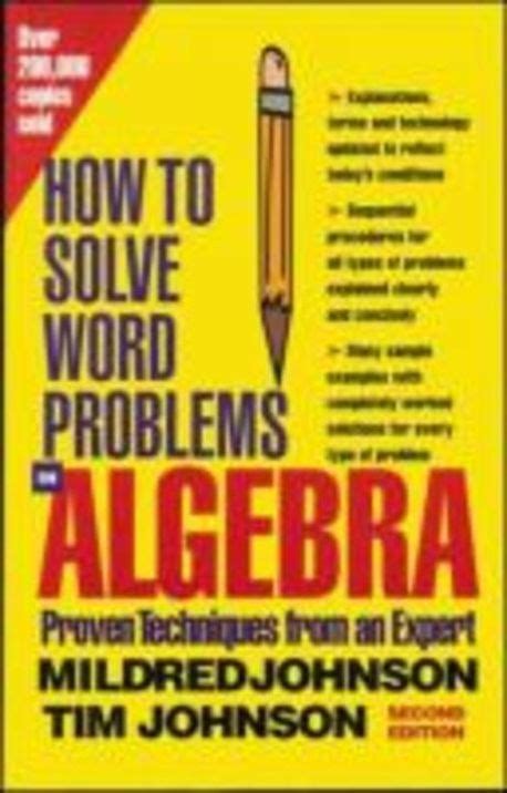 How To Solve Word Problems In Algebra 2nd Edition written by Mildred Johnson and has been published by Mcgraw-hill this book supported file pdf, txt, epub, kindle and other format this book has been release on 1999-08-25 with Mathematics categories. Solving word problems has never been easier than with Schaum's How to Solve Word Problems in Algebra! This popular study guide shows students easy ways to solve what they struggle with most in algebra: word problems. How to Solve Word Problems in